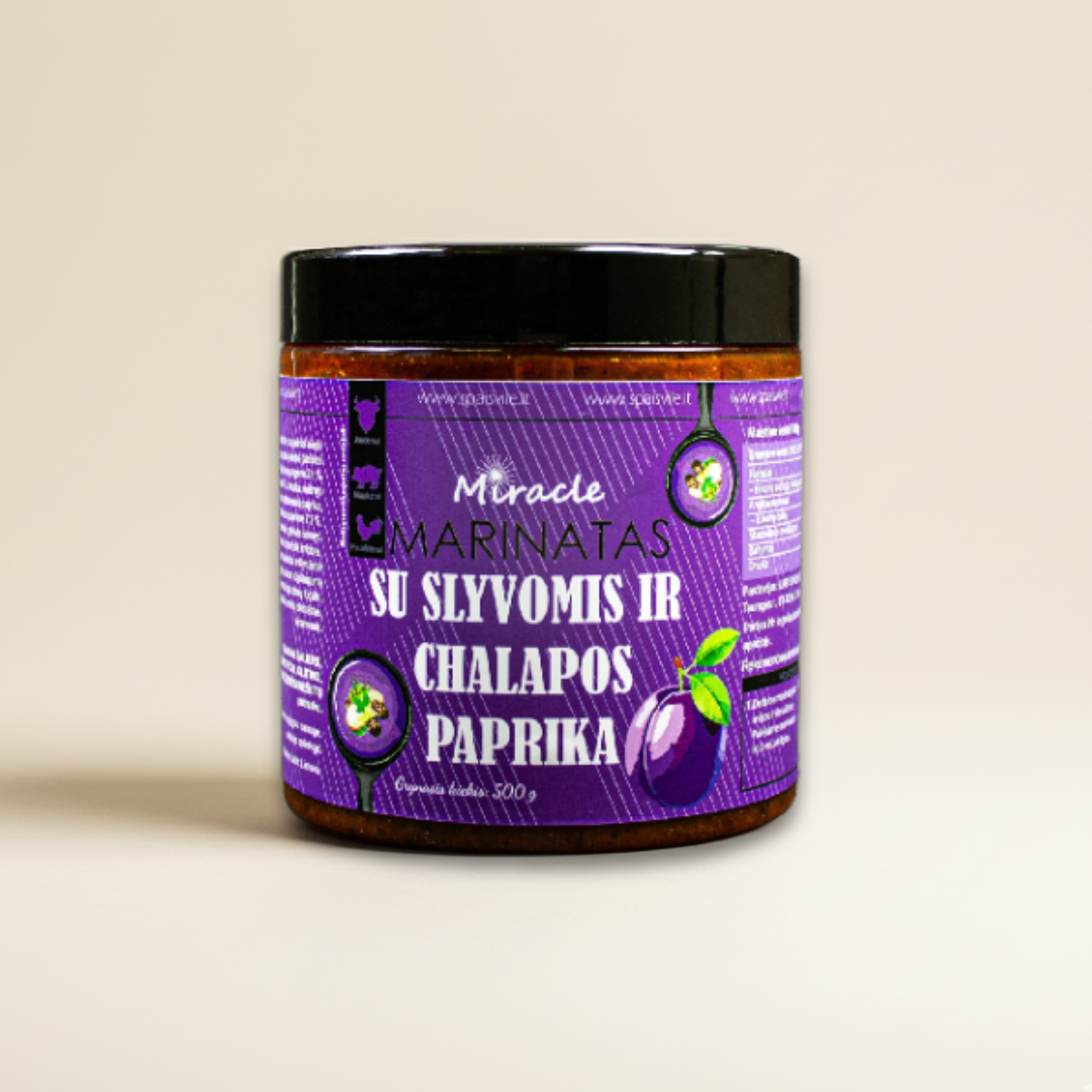 Augaliniai aliejai (rapsų aliejus, visiškai hidrintas rapsų aliejus), slyvų uogienė (cukrus, slyvos 45 %), druska, mišinys (aitrioji paprika, raudona saldi paprika, jalapeno paprika 7,2 %, svogūnai, česnakai, gelsvės šaknys, ožragė, kalendra, ciberžolė, imbierai, kuminas, pankolis, mėlynžiedė ožragė), cukrus, antioksidantas E330, gvazdikėliai, mielių ekstraktas, cinamonas.